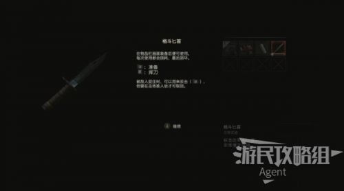 黑人警官给了里昂一把格斗匕首,除了可以当做武器攻击(每次攻击都会有损耗),还可以用来在被僵尸抓住时反击(类似生化1重制版的防身匕首)。虽然反击后还可以从僵尸的尸体上取回匕首,但是会消耗不少耐损度。