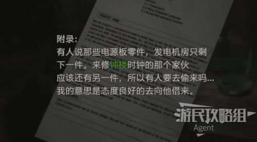 电源板零件,需要分别去发电机房和钟楼拿。