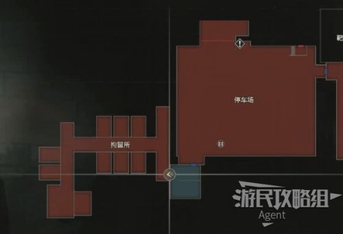 现在有两个电子零件了,回负一层的拘留所。穿过一楼东边的警卫室,从休息室上方的楼梯,下去到负一层。然后穿过停车场(僵尸狗可以不打),到拘留所。