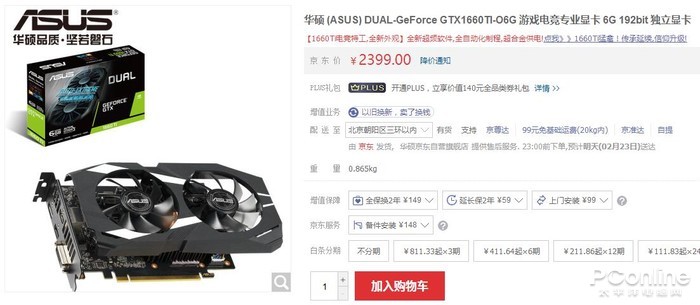 | 华硕 DUAL GTX 1660Ti O6G | 2399元 | - | 3年 |