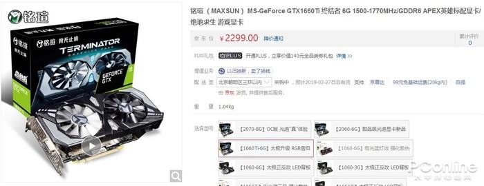 | 铭瑄 MS GTX 1660Ti 终结者 6G | 2299元 | 1500-1770MHz | 3年 |