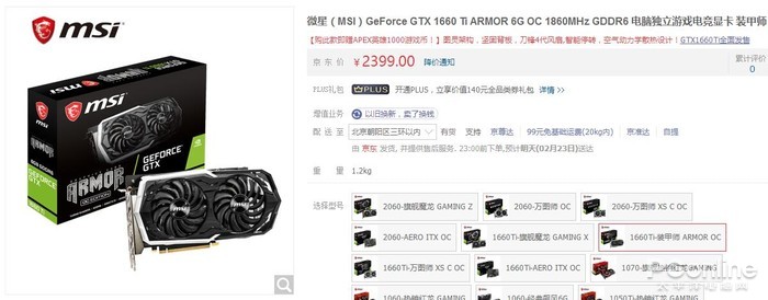 | 微星 GTX 1660 Ti ARMOR 6G OC | 2399元 | 1500-1860MHz | 3年 |