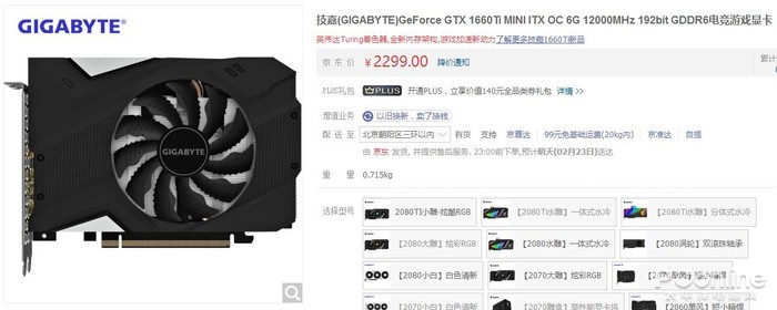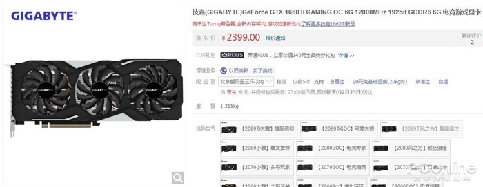 | 技嘉 GTX 1660Ti MINI ITX OC 6G | 2299元 | 1500-1785MHz | 3年 |