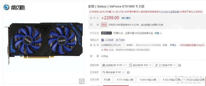 | 影驰 GTX 1660Ti 骁将 | 2199元 | 1500-1785MHz | 3年 |