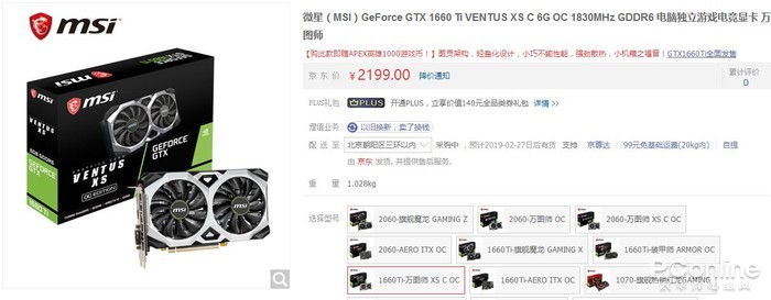 微星 GTX 1660 Ti VENTUS XS C 6G OC显卡:2199元