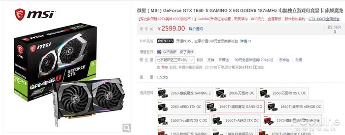 微星 GTX 1660 Ti GAMING X 6G显卡:2599元