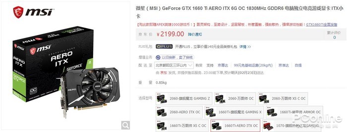 | 微星 GTX 1660 Ti AERO ITX 6G | 2199元 | 1500-1830MHz | 3年 |