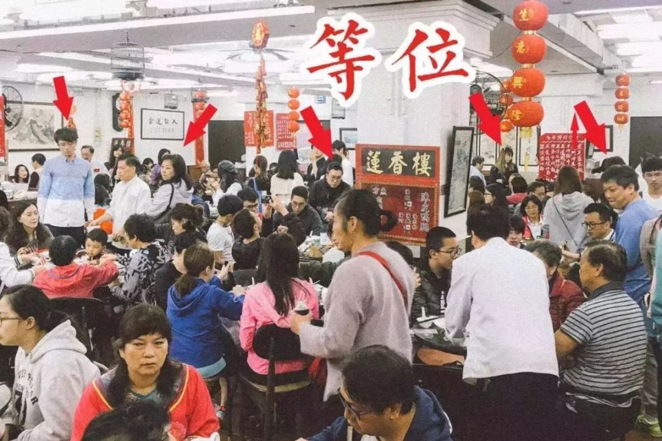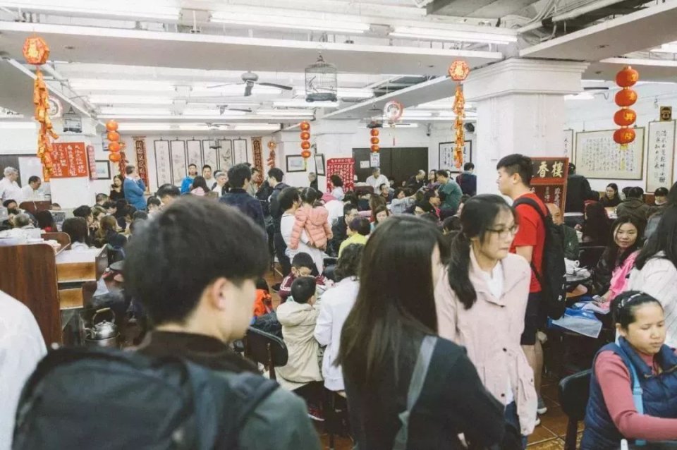 在莲香楼喝茶和在别地不一样,不占位是根本吃不到,所以你常常会突然发现背后站着人,大多是他看上了你的位置,等你走后他就直接能坐下。