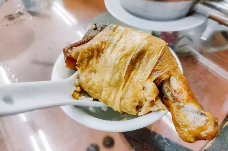 包着猪肉、香菇、虾仁,还有个大鸭掌,口感层次之丰富是广式茶点中相当少见的。