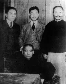1937年12月25日,武昌青年街循道会福音堂门前,右起:彭泽民、李烈钧、冯玉祥、王造时、李公朴