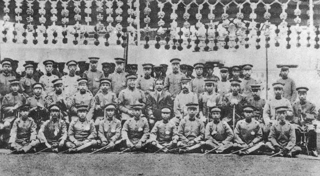 1912年10月25日,孙中山低南昌,次日出席南昌军界欢迎会时合影,孙中山右侧为江西都督李烈钧。