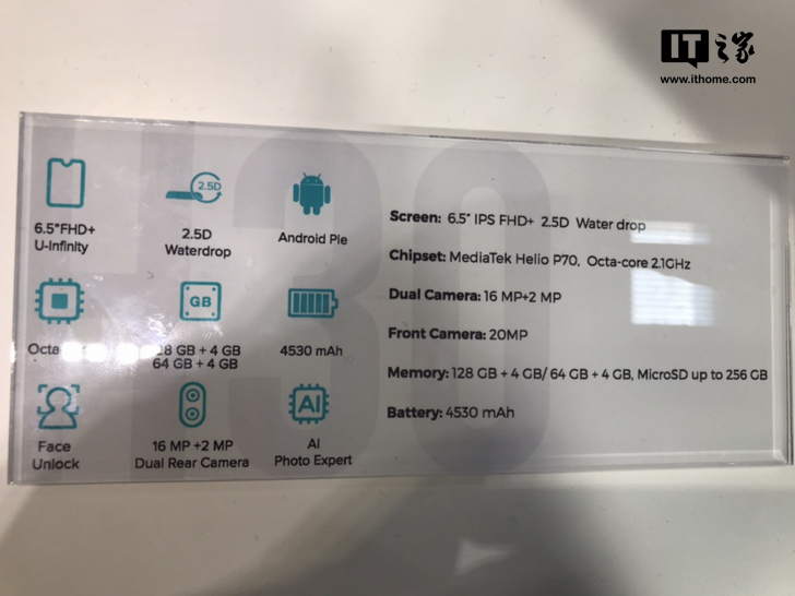 这款手机搭载了容量高达4530mAh的电池,配备1600万像素+200万像素后置双摄。该机支持人脸解锁、AI照片编辑等,预装安卓9 Pie系统。