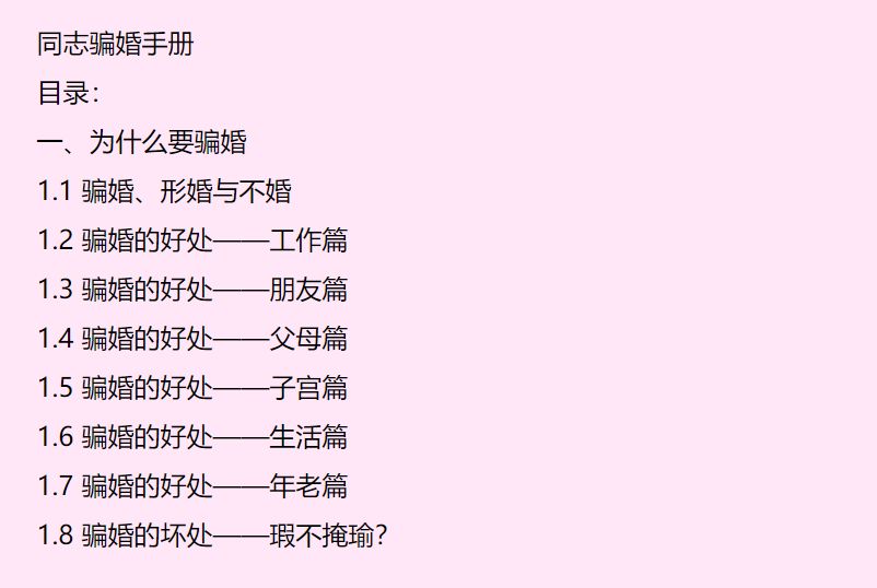 有段时间,网上曾广为流传一个《同志骗婚手册》。