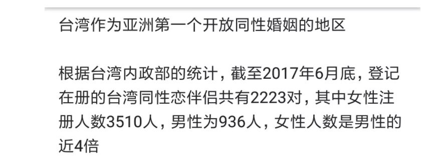 在台湾开放同婚登记后,女同性恋的登记数量,是男同的四倍。