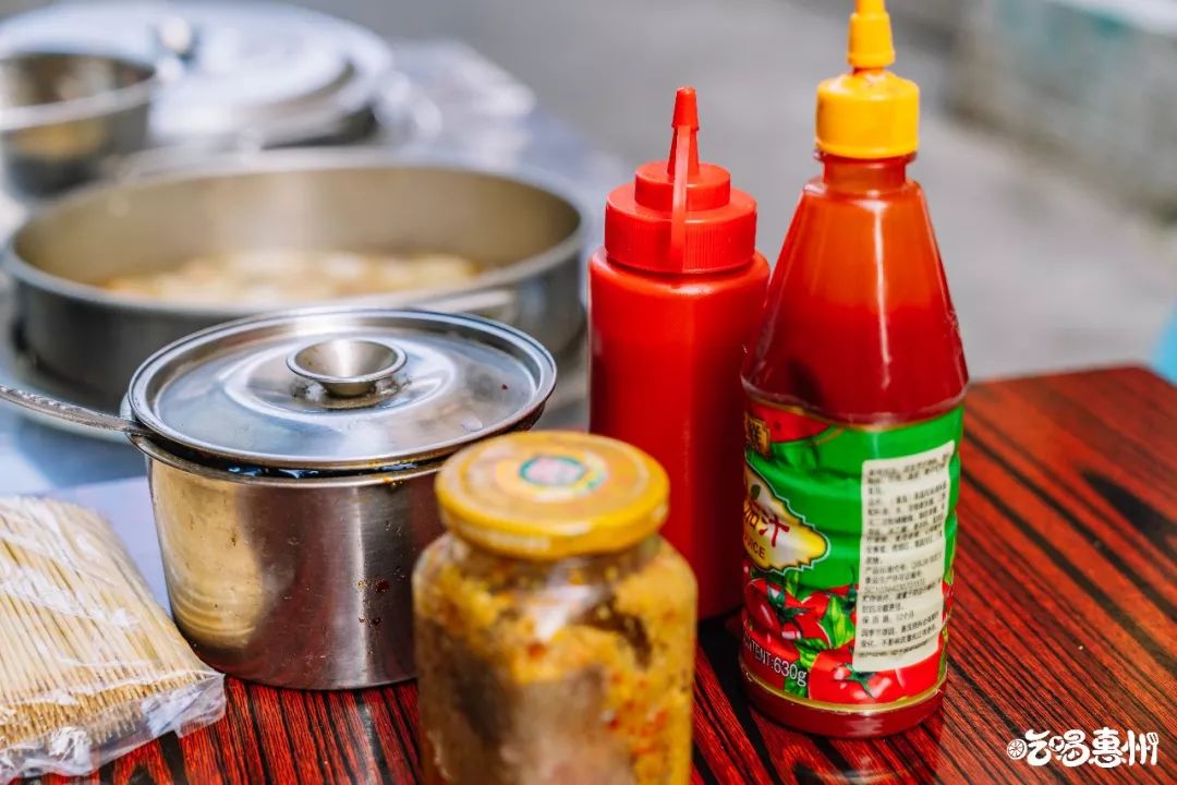 说他家是酱料大户也差不多了,一般小摊上,只有一两个酱,他家有辣椒酱,蒜蓉酱,番茄酱,想吃什么直接加就好了。