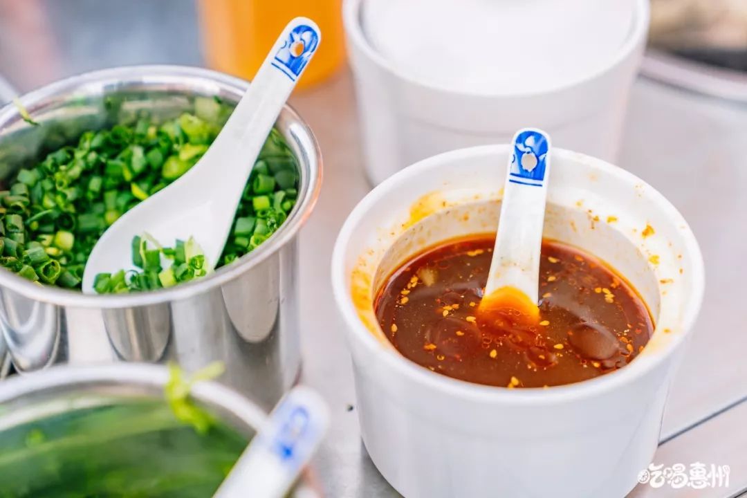 这家除了辣椒酱,还有另一种酱,加到牛杂里显得更加的鲜嫩,还可以选择是否加香菜。葱之类的。