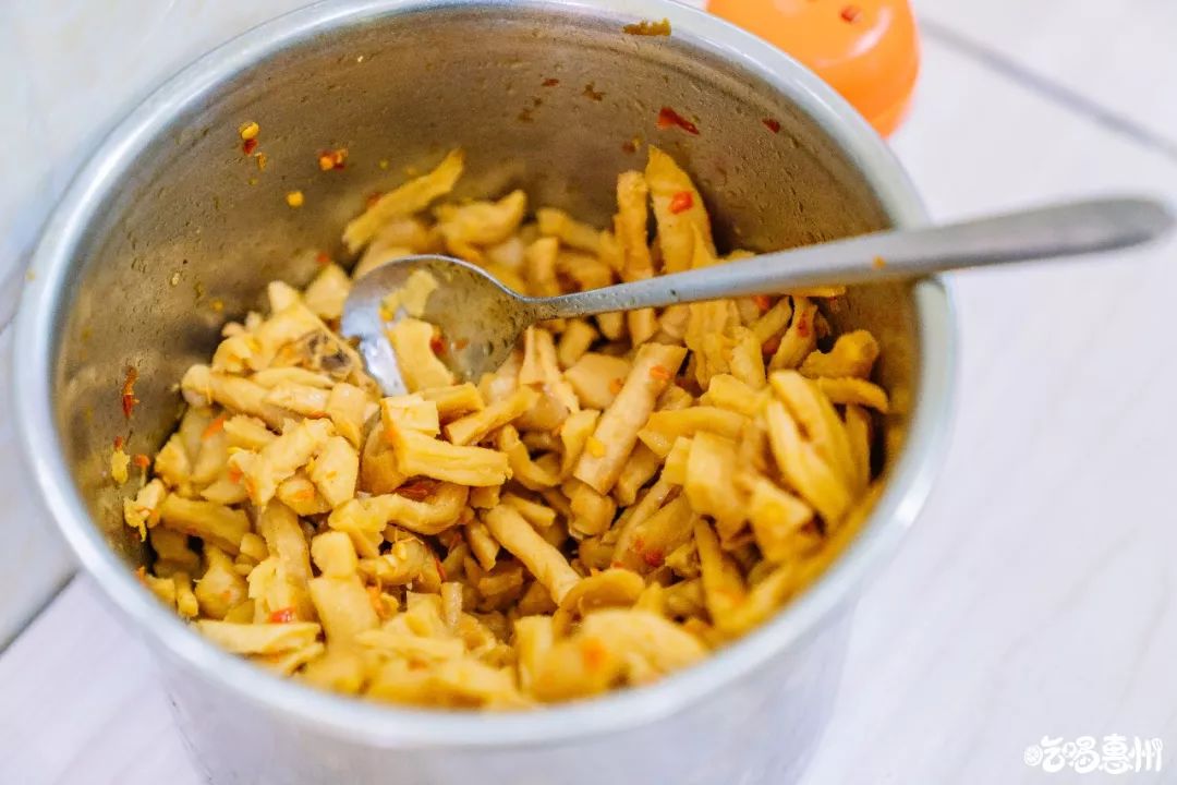 和上一家不同的是,这家的配菜是萝卜脯,口感软而有嚼劲,加到牛杂里浸润一番后,混着牛杂吃的十分舒服。