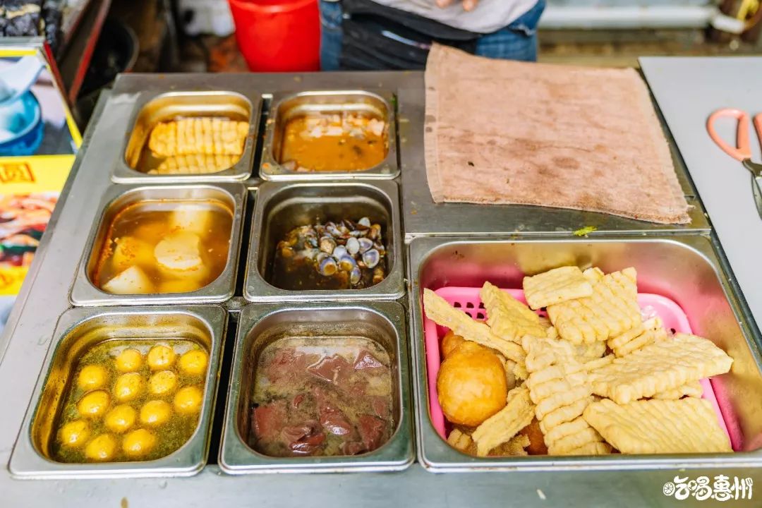除了牛杂,店里还有咖喱鱼蛋,豆腐、捞蚬、猪血等,选择性很多,是一家食物丰富的小吃店。