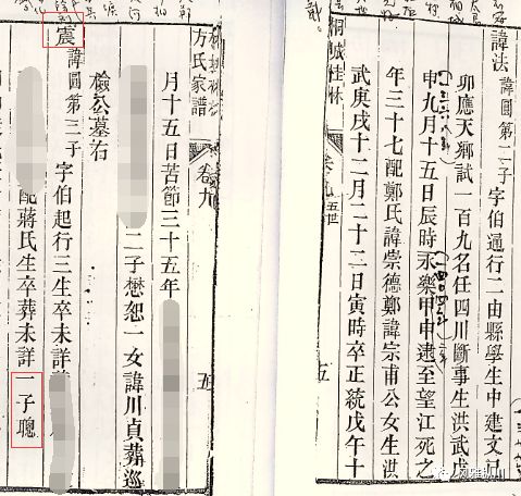一:方懋、方恕是中房方法子。图错误的接线在方震支后(方震一子方聪,方聪三子方华、方饶、方富(此三子称前三房)。