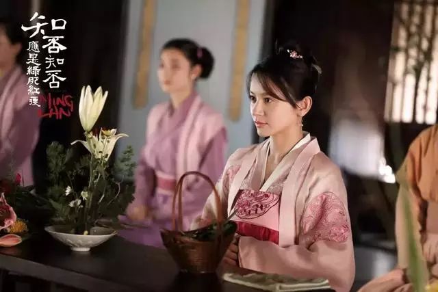 赵丽颖饰演的女主角、盛家最聪慧的六小姐明兰,在姐妹们争吵的同时,默默地听着嬷嬷的教导,自己插出了一盆花。虽然没有花草的特写,不过还是可以看出,这盆花里主花是蝎尾蕉,搭配香雪兰,配花采用的是小菊。