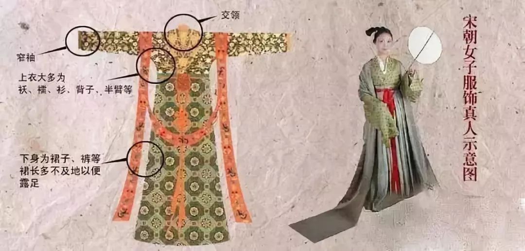 宋代的便装时兴瘦、细、长,宋代无论贵族平民都喜欢穿一件直领对襟的外衣,学名叫褙(bèi)子。