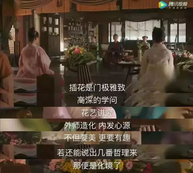 在第八集里,宫廷教习嬷嬷教几位小姐学插花。颇有心计的四姑娘一个劲儿地问嬷嬷如何搭配不同的花,被心直口快的五姑娘道破心思:是为了嫁进大户人家,才学的这些贵族少女们提升格调的插花艺术。