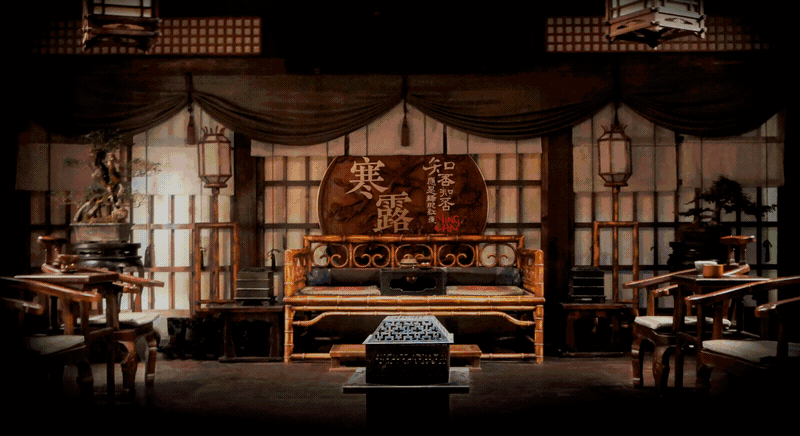 还有剧中走到哪坐到哪的几个大人物常坐的交椅,盛家老爷夫人在院子里训人,就坐了交椅。