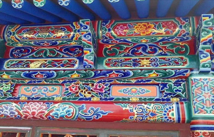 地方彩绘:地方彩绘是一种非常接地气的彩绘,同时它也是融合性强的一种彩绘。它在集成苏式彩绘、旋子彩绘以及和玺彩绘的基础上,又很好的各个地方的特色进行融合,所以逐渐的成了很多的不一样的风格。