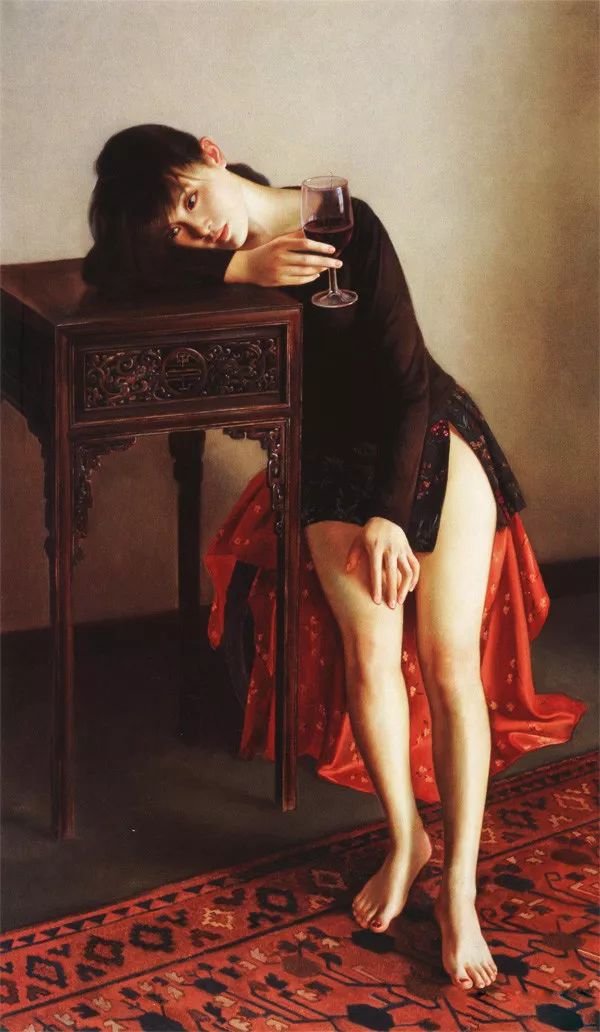 李贵君作品《喝红酒的女孩》