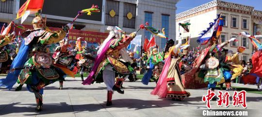 图为身穿特色服装的演员进行舞蹈。 才让 摄