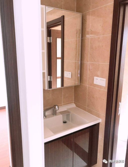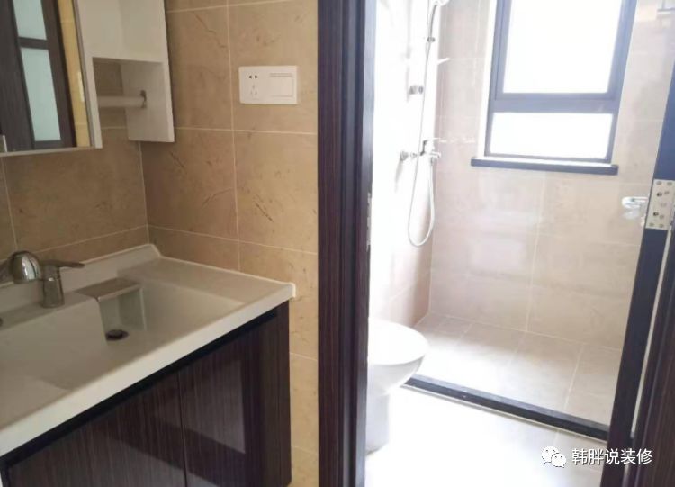 最后我们看看卫生间,洗手池装在外面,这样可以避免早上的时候上厕所和刷牙洗脸起冲突,而且卫生间里面的空间会更宽敞一些。