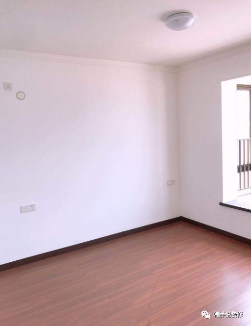 看完公共区域,我们接下来看看生活区域。这边是主卧室,和大部分精装房一样,铺的都是暗红色的木地板呢,墙壁上只刷大白。就这么一种标准的简洁效果,作为睡觉的地方却是足够了,给人一种非常温馨的感受。主卧室的窗户下面装了小飘窗,效果很赞哦!