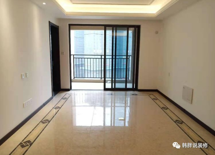 客厅的空间相对来说要比餐厅大上不少,不过效果和餐厅如出一辙。电视墙和沙发背景墙都是大白墙而已,后期入住的时候可以加一些装饰挂画。客厅的外面有一个阳台,装了玻璃推拉门来实现隔断,阳台是整个空间的主要光线来源。
