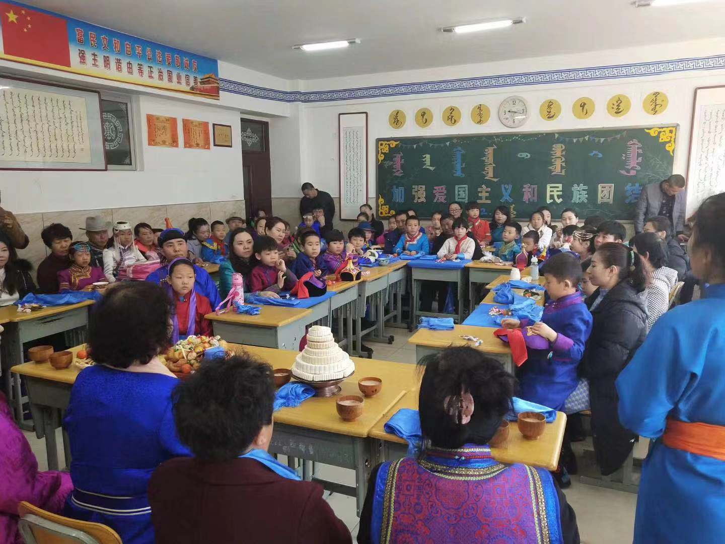 作为呼和浩特市一所蒙古族学校,在迎新年的开学典礼上,孩子们在这一天向自己的长辈们再一次拜年,给自己的爷爷奶奶、姥姥姥爷或父母献上了蒙古族的哈达,愿长辈们在新的一年里,吉祥安康。