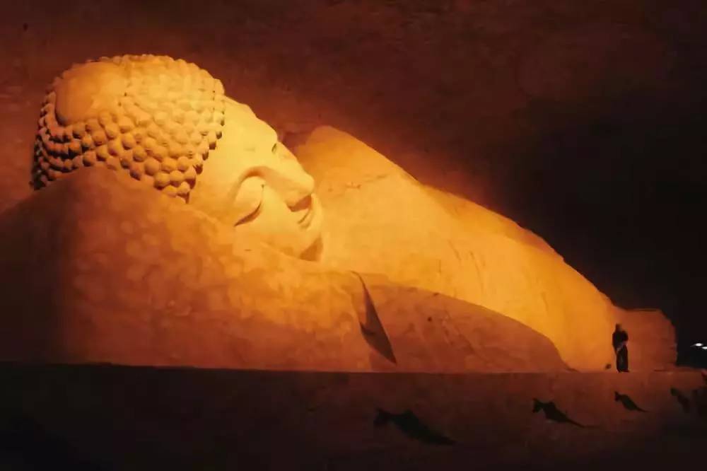 释迦牟尼佛在入涅槃时,头朝向北方。有些论典中说,这意味着佛陀殊胜的大乘佛法,将在印度的北方——藏地、汉地等处得以弘扬,有这样一种缘起。