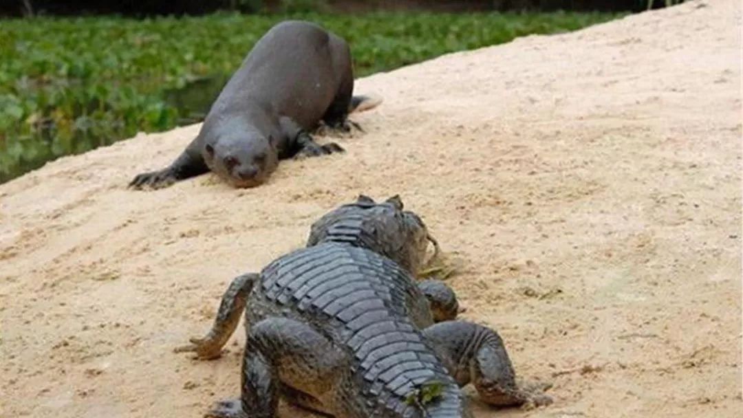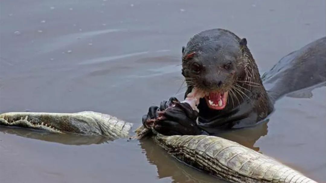 这种称得上是“水中平头哥”的水獭不是一般的水獭,而是美洲巨型水獭,成年美洲巨型水獭的身长能够达到两米,它战斗力的声名大噪始于跟水上霸王——鳄鱼的生死一战。