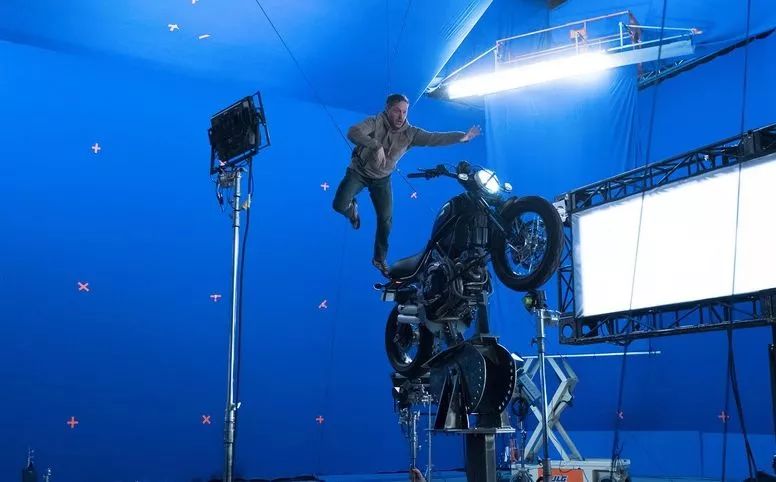 有特技车手的镜头需要进行面部更换。特效团队延伸拍摄了四周蓝幕环绕下坐着的汤姆·哈迪。四台Alexa摄影机,前面两台,两侧一边一台,捕捉他的脸部特写镜头,DNEG 从中生成了准备投影到特技表演者头部的贴图,利用紧凑身体跟踪数据进行投影。亚历山大·希曼在拍摄结束后担任数字特效总监,他评论道:“实景拍摄总是会给你带来稍好一点的效果,假定场景中没有明显的灯光变化,这一直是我们的首选方法。如果他确实穿过了很多不同的光区,或者如果摄影机在他周围旋转太远,那么我们就会默认使用一张带有某些角色造型的数字代替身脸。”