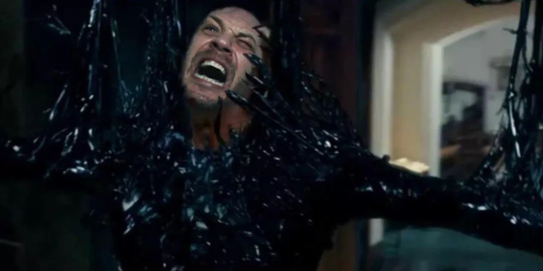被撞飞后,埃迪看起来已经快不行了,瘫倒在街上。但雇佣兵靠近过来之后,黑色的粘液从埃迪身体里渗出,并将他断裂的四肢恢复原状。粘液把埃迪支撑起来,慢慢包裹着他并变形成一个有宽大眼睛和血盆大口的高大人形生物。汤姆·哈迪在一个安装在dolly车上的气动升降机上完成他在这一变形场景中的表演,这个升降机可以把他举到正确的高度;然后DNEG制作了他周围的粘性物质,让观众第一次看到完整的变形后的毒液形象。