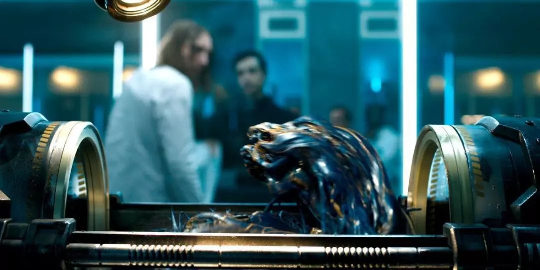 动画师从真人表演中获取时间点提示,让触须用简单的管的形式按照时间点开始表演。随着电影制作者对剪辑点的精雕细琢,动画团队对每一个动作提炼出本质和精华,在尽可能短的时间内最大限度地讲述故事。随后,动画缓存与原始共生体一起流转到特效部门。“我们会从动画中提取中心曲线,”乔丹·沃尔说,“我们触须工作领域的领头人乔纳森·戴维斯(Jonathan Davies)在此基础上利用额外的扭转曲线建立了复杂的网络。”虽然触须是基于液体构成的,但鲁本·弗来舍极力避免将其与电影《深渊》里的伪足水怪相提并论。“触手在空中飞舞时,曲线上开,确实感觉它有点像个流体;但当它们抓住某人时,它们会收紧,感觉更像是绳索或肌肉束。”