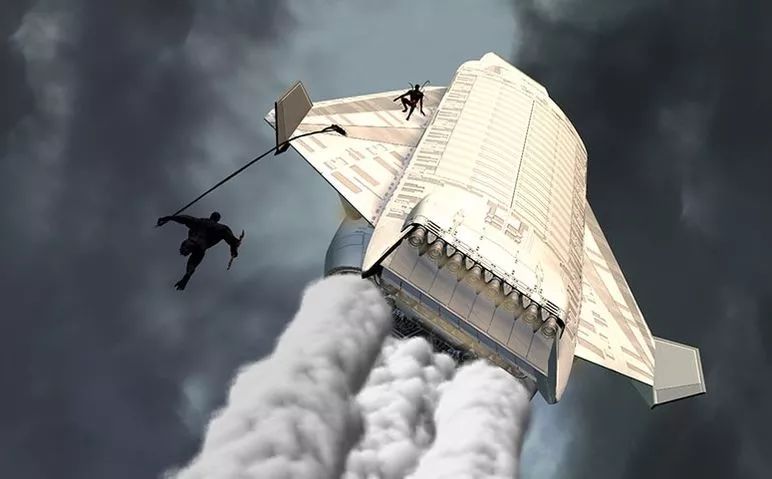 最后,德雷克和他的共生搭档结合重新变形成暴乱,用矛刀刺穿埃迪的胸膛,并跳上了航天飞船。火箭启动后,毒液使埃迪复活,从胸膛拔出暴乱的矛刀,用断开的刀片像开罐头一样划开攀升中的飞行器油箱,引发飞行器灾难性的爆炸。DNEG对发射控制中心和发射航天器的竖架做了一些数字场景延伸,为整个火箭基地建立了广阔的环境,复制了波尼塔角周围的马林海岬地区,并以数字海洋环绕这一切。视效团队在毒液和暴乱沿着竖架打斗时逐渐摧毁了竖架,并用刚体破坏和大量烟火模拟摧毁了一架CG航天飞机。