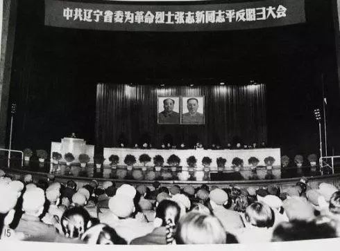 1979年3月31日辽宁省委召开了为张志新烈士平反昭雪大会。4月4日,是烈士殉难4周年的日子,省委宣传部在沈阳回龙岗革命公墓礼堂,举行了隆重的追悼大会。会场四周摆满了花圈。烈士的母亲在墓碑上题词:“探求真理,贵在实践,忠骨毁灭,浩气长存”。