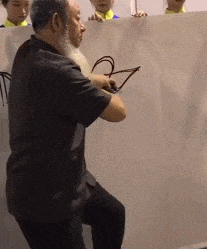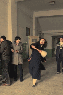 下面这位教授就把少林身法与武当铁拳融入到了书法里面。
