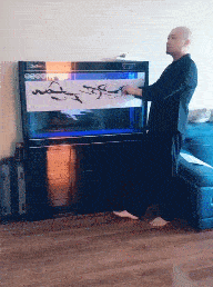 这一点在下面这位书法大师身上体现得尤为尽致。不光是他家那不要钱的纸墨,奋不顾身的动作更是达到了人笔合一的超脱。