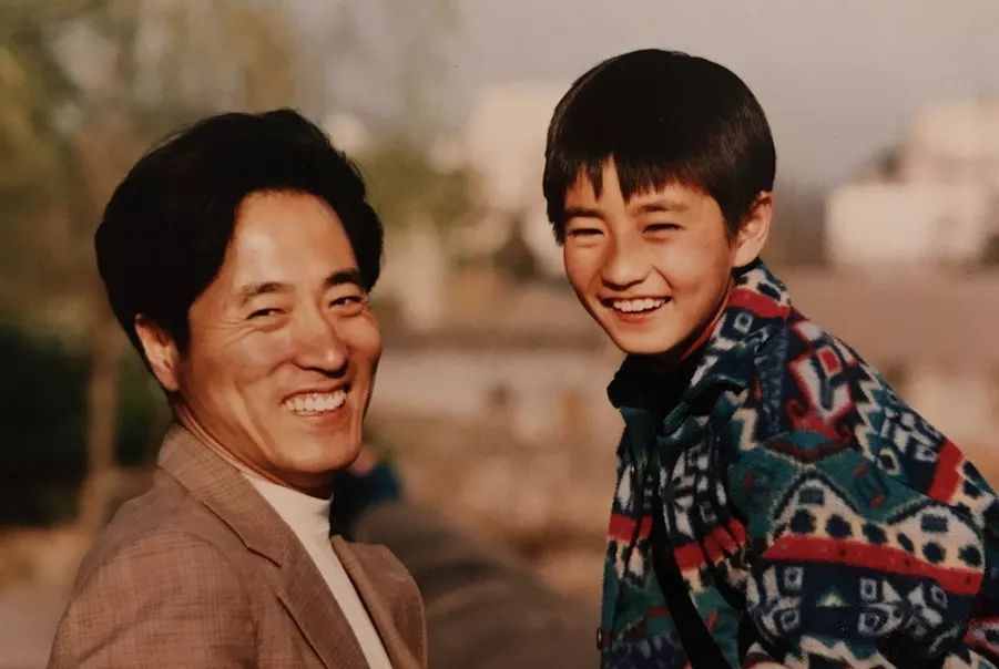 1997 年,在北京市光明桥的杨立新、杨玏父子。