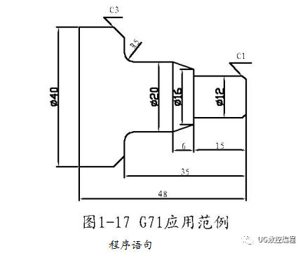 概述:G71指令称之为外径粗车固定循环,它适用于毛坯料粗车外径和粗车内径。在G71指令后描述零件的精加工轮廓,CNC系统根据加工程序所描述的轮廓形状和G71指令内的各个参数自动生成加工路径,将粗加工待切除余料切削完成。
