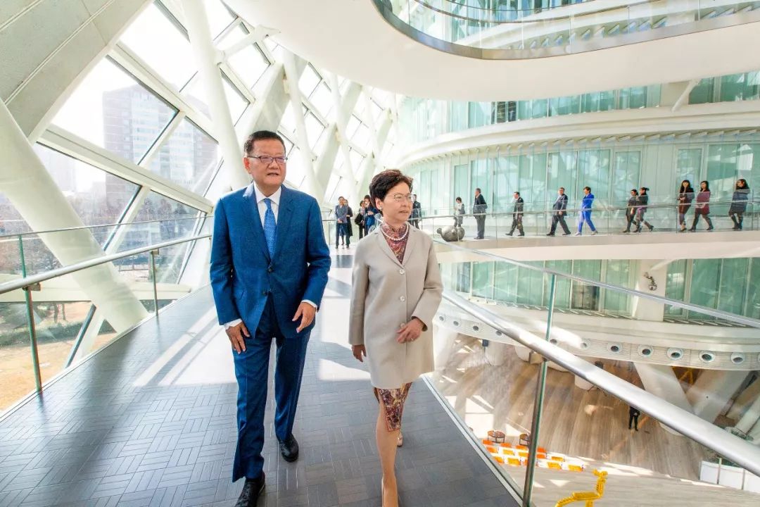 香港特别行政区行政长官林郑月娥女士与凤凰卫视董事局主席、行政总裁刘长乐先生漫步梦之桥