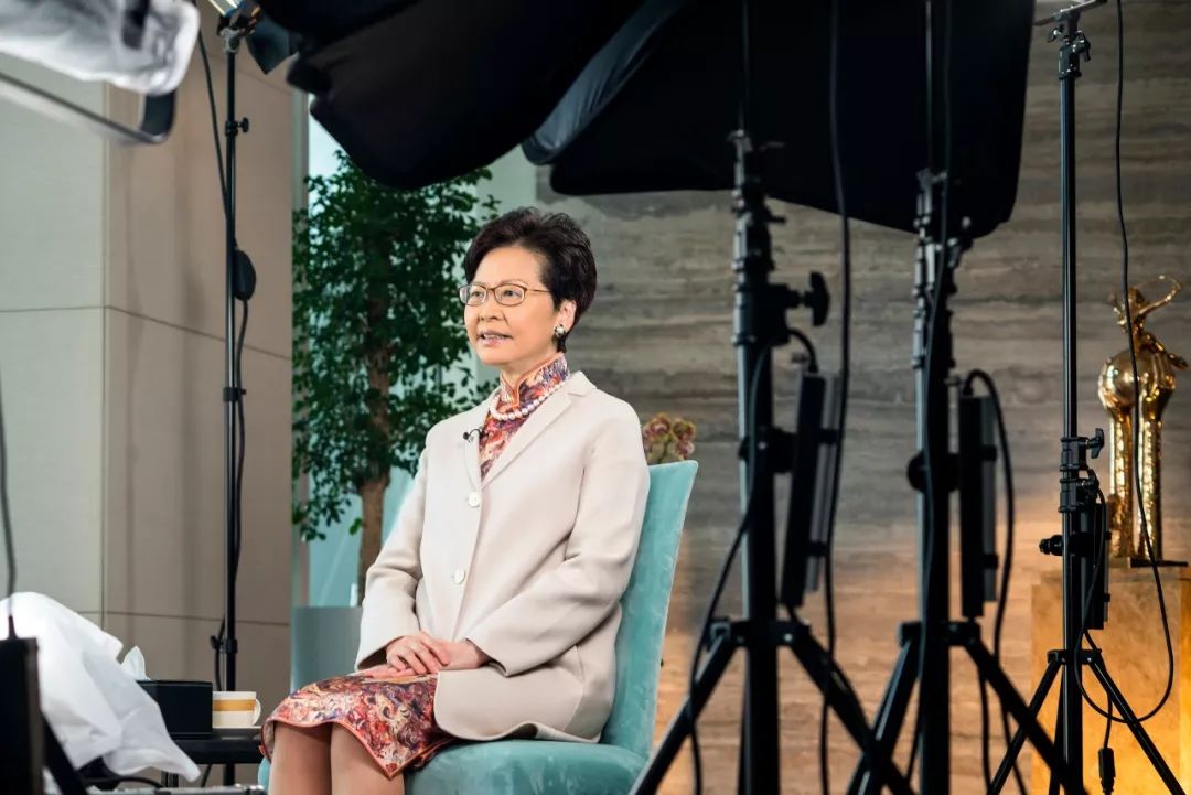 参观结束后,特首接受了凤凰卫视《问答神州》节目主持人吴小莉的采访。当问及粤港澳大湾区的发展和未来的施政方针,特首表示:《粤港澳大湾区发展规划纲要》的出台,对于大湾区的人来说是一件非常高兴的事情,特首还详述了纲要出台历程。适逢三八妇女节,特首向全球华人女性表达了自己的祝福:“机会是很多的,只要自己掌握好机会,无论男性女性,都能在事业上有一番成就!”