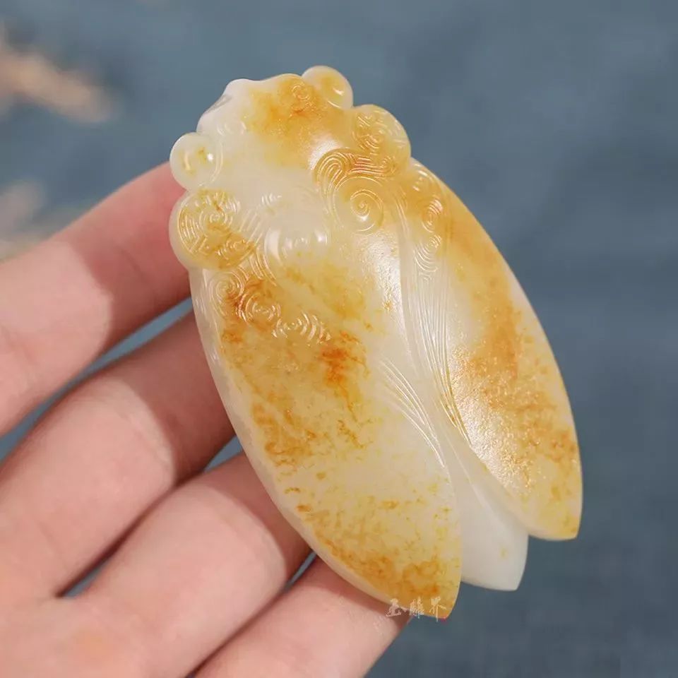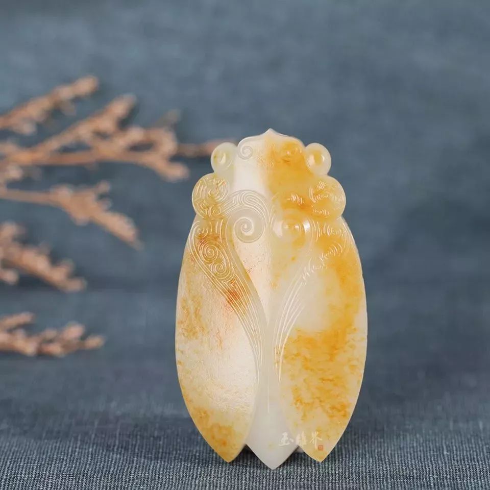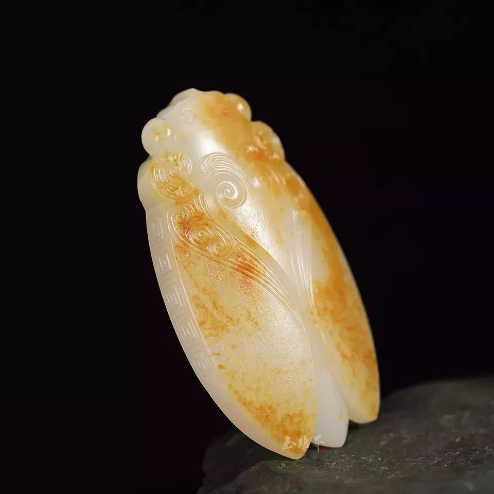 在玉石雕刻艺术品中,玉蝉是常见的艺术题材,寓意丰富,雕刻刀法运用巧妙,其中最有名的当属汉八刀,将玉雕蝉推向了很高的艺术顶峰。