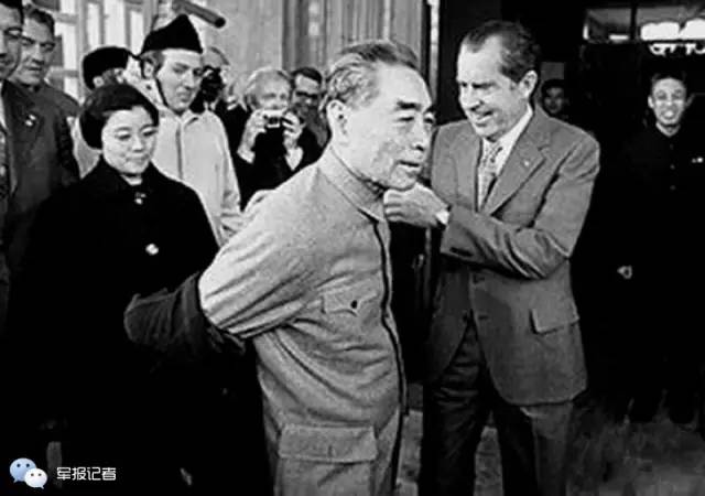 尼克松亲自为周总理脱大衣。