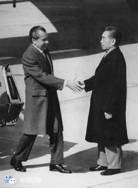 1972年2月,周恩来在机场迎接美国总统尼克松。这是美国有史以来第一位出访未建交国家的总统。
